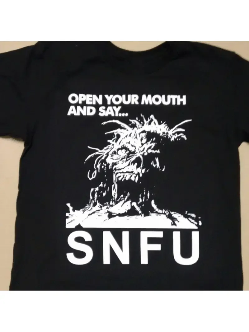 SNFU's first album, …And No One Else Wanted To Play (1984), was full of lyrics Chinn had penned on break in the bathroom during shifts at Saveco ("Slaveco", as Chinn called it) on Jasper Avenue. Although SNFU's lyrics might as well have been "in Mongolian” according to some listeners and were wailed over music Chinn himself described as "like getting beat on the head with a hammer for an hour," they could be as poignant and personal as they might be “really smart but… really stupid”. Some of Chinn's lyrics, such as the repeated shout of "proved to the world he isn't gay" from Victims of the Womanizer, were both unambiguous and more significant than many listeners realized.